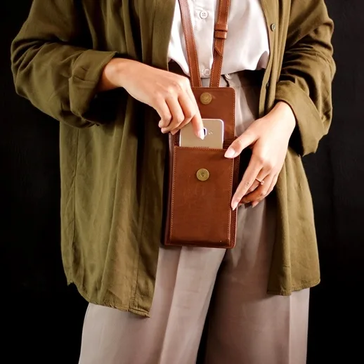 Sachi itu ibarat paket lengkap “Beli 1 Dapet 3”. Ya tempat handphone, ya dompet buat simpan uang tunai, ya tempat kartu-kartu penting (mulai dari kartu ATM sampai kartu member gym yang jarang dikunjungi itu). Desainnya yang compact bikin kamu nggak perlu lagi bawa dompet terpisah. Cukup satu pouch kulit untuk hp ini, semua kebutuhan esensial sudah aman di pundak.